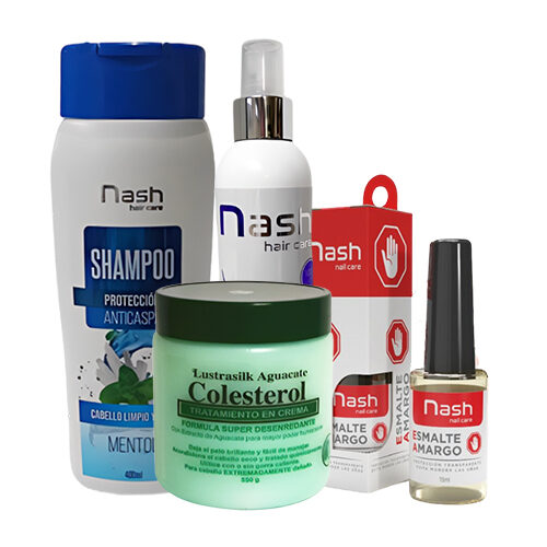 Combo Shampoo Anticaspa con Mentol+Laca Deluxe+Colesterol Aguacate + Esmalte Amargo Nash