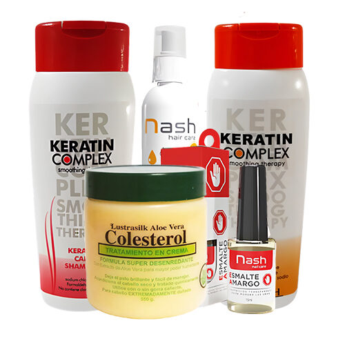 Combo Shampoo y Rinse Keratin Complex + Gotas de Brillo para Cabello + Colesterol Aloe + Esmalte Amargo Nash