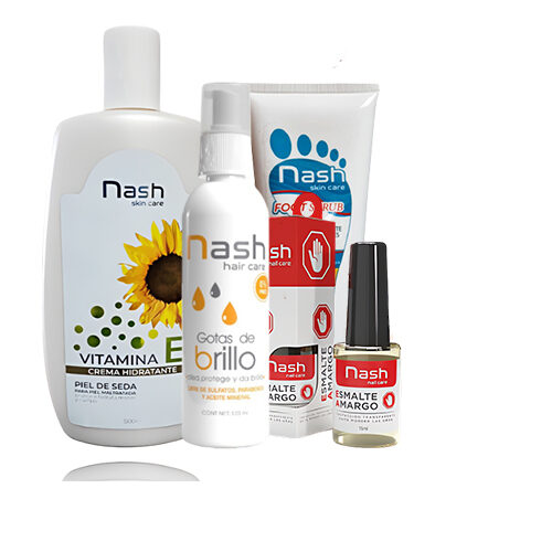 Combo Crema de manos con vitamina E + Crema Exfoliante + Gotas de Brillo + Esmalte Amargo Nash