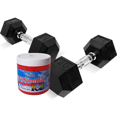 Combo Mancuerna Hexagonal 20lbs Model YUNT-162-20 + Gel Sport Hot Ice 330g