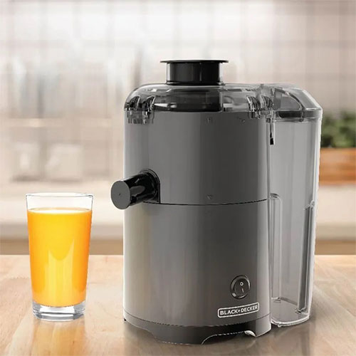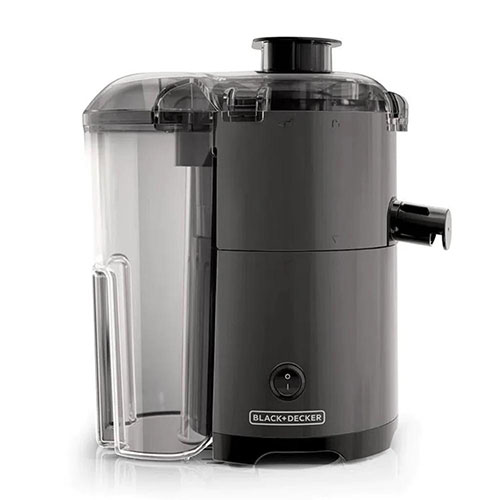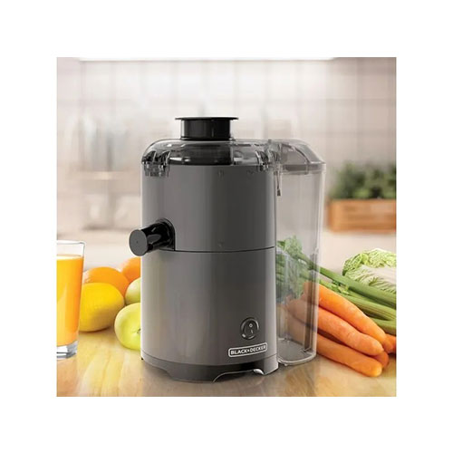 Extractor de jugos Black&Decker con el que puede disfrutar de jugos rápidos con menos ruido, sencillo montaje de giro, mantiene su área limpia, transfiriendo su jugo casero usando el pico sin goteo. Este exprimidor elegante y vertical está diseñado para ahorrar espacio en su cocina.
