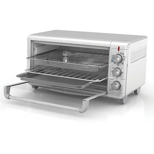 La tecnología de cocción por convección circula el aire dentro del horno para resultados rápidos y uniformes al freír con aire. Además, este horno tostador incluye una cesta diseñada para freír con aire, una bandeja y parrilla para hornear/asar y una bandeja para migas externa que se desliza hacia adentro y hacia afuera del horno para una limpieza fácil.